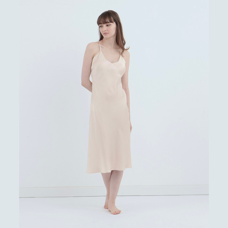 • 純蠶絲細肩洋裝 粉米色