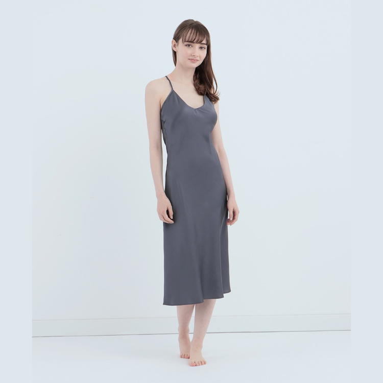 • 純蠶絲細肩洋裝 木炭灰
