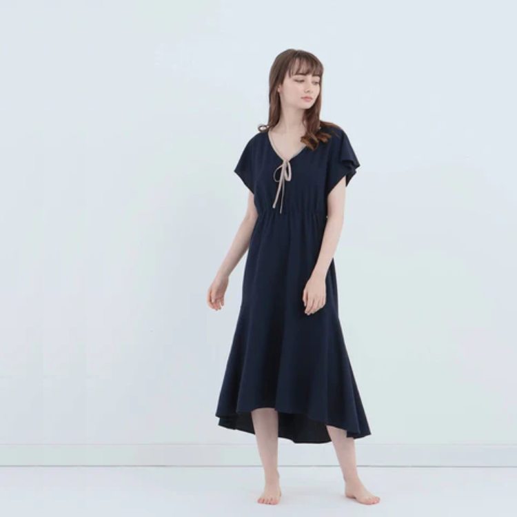 蝴蝶結有機棉長洋裝,使用珍貴的皇家有機棉。 -