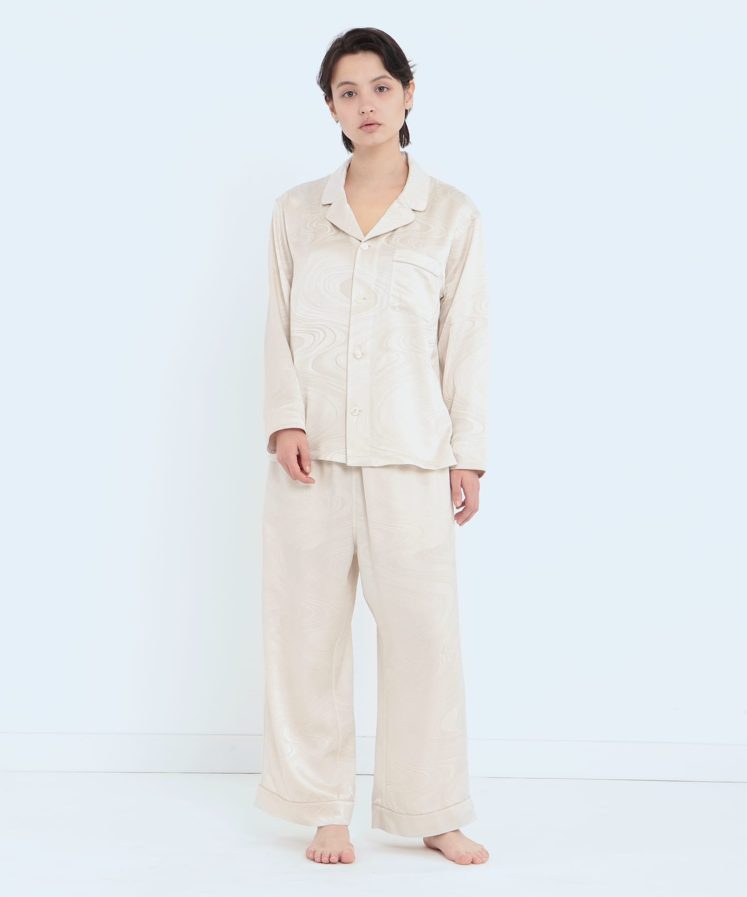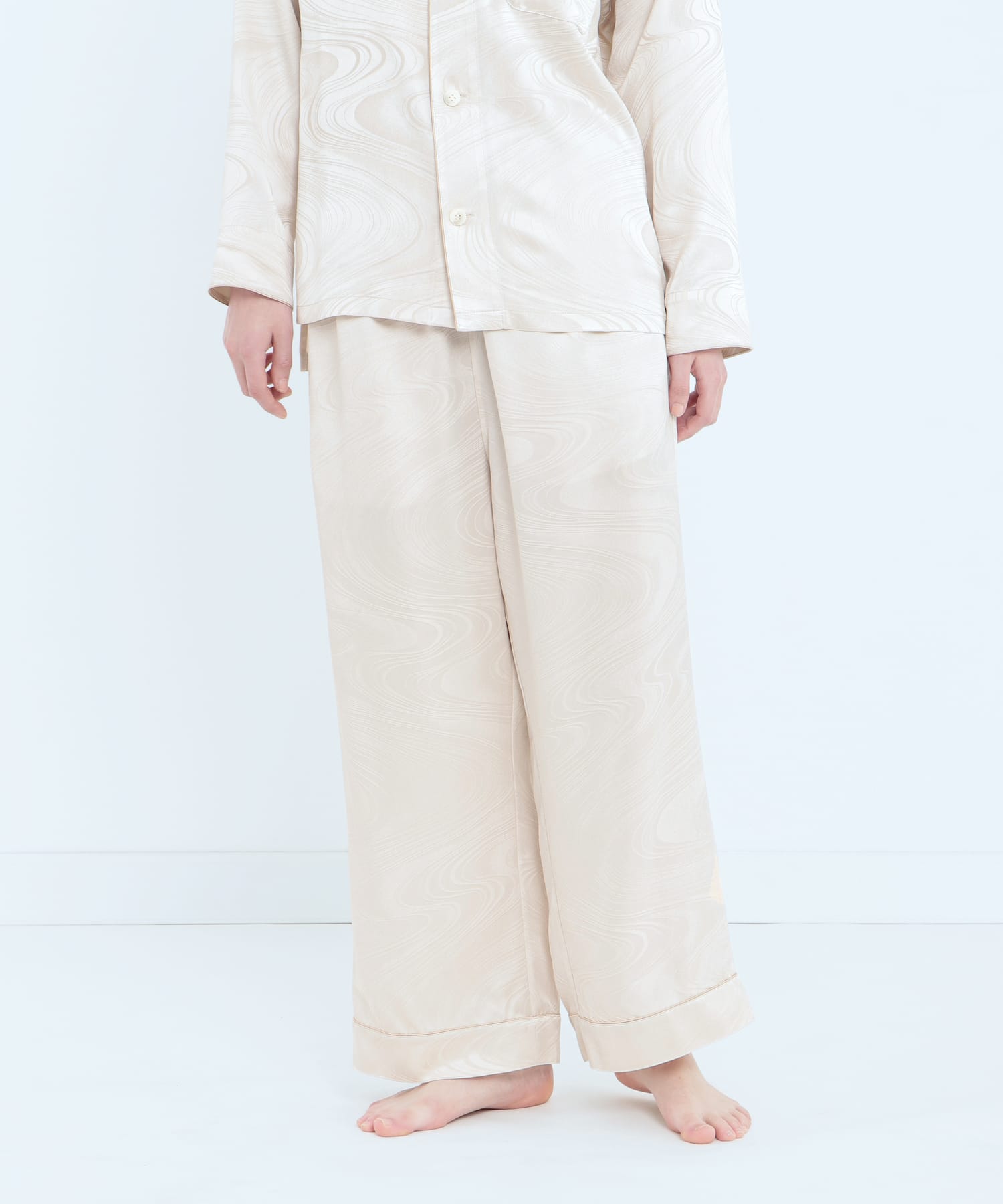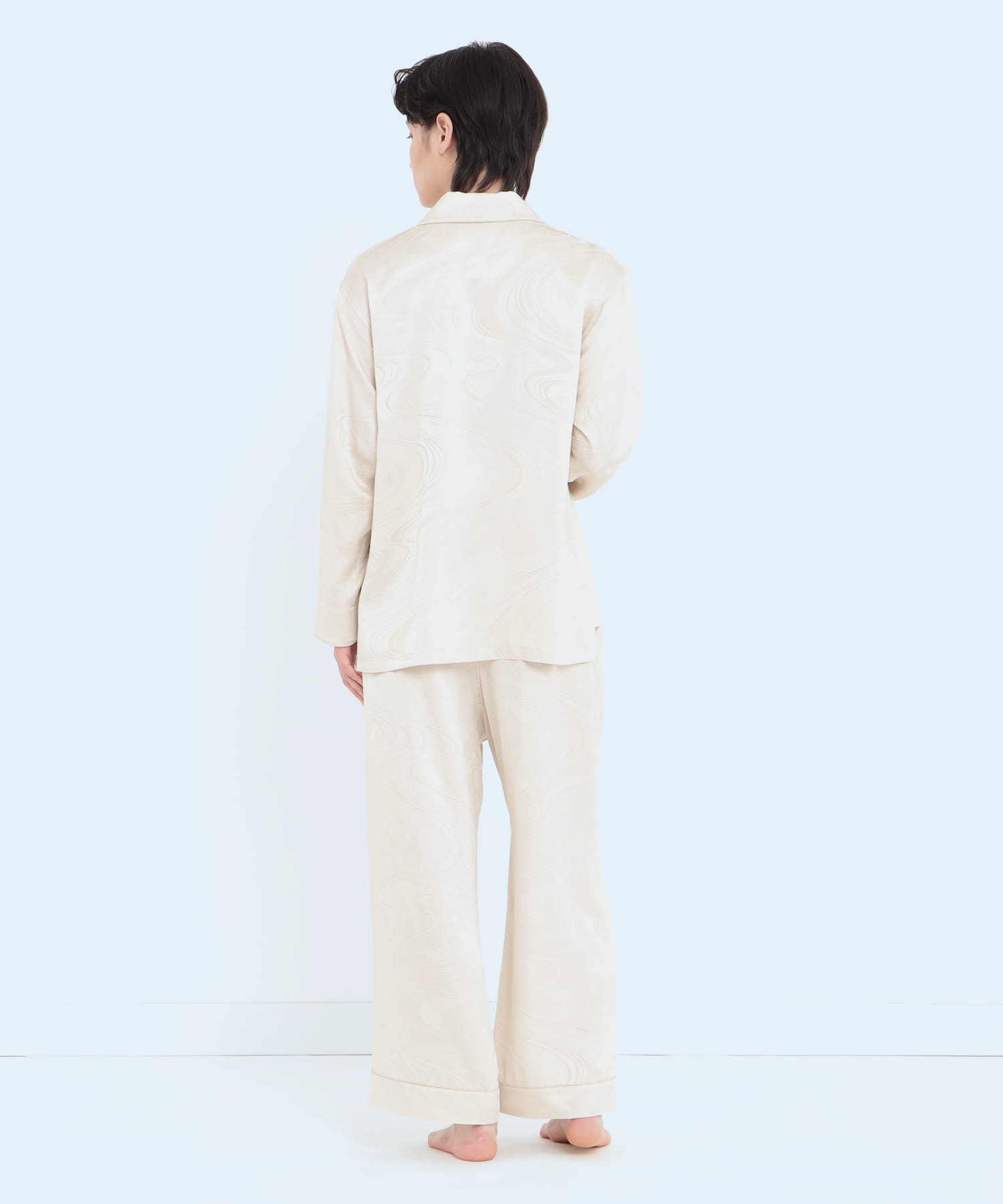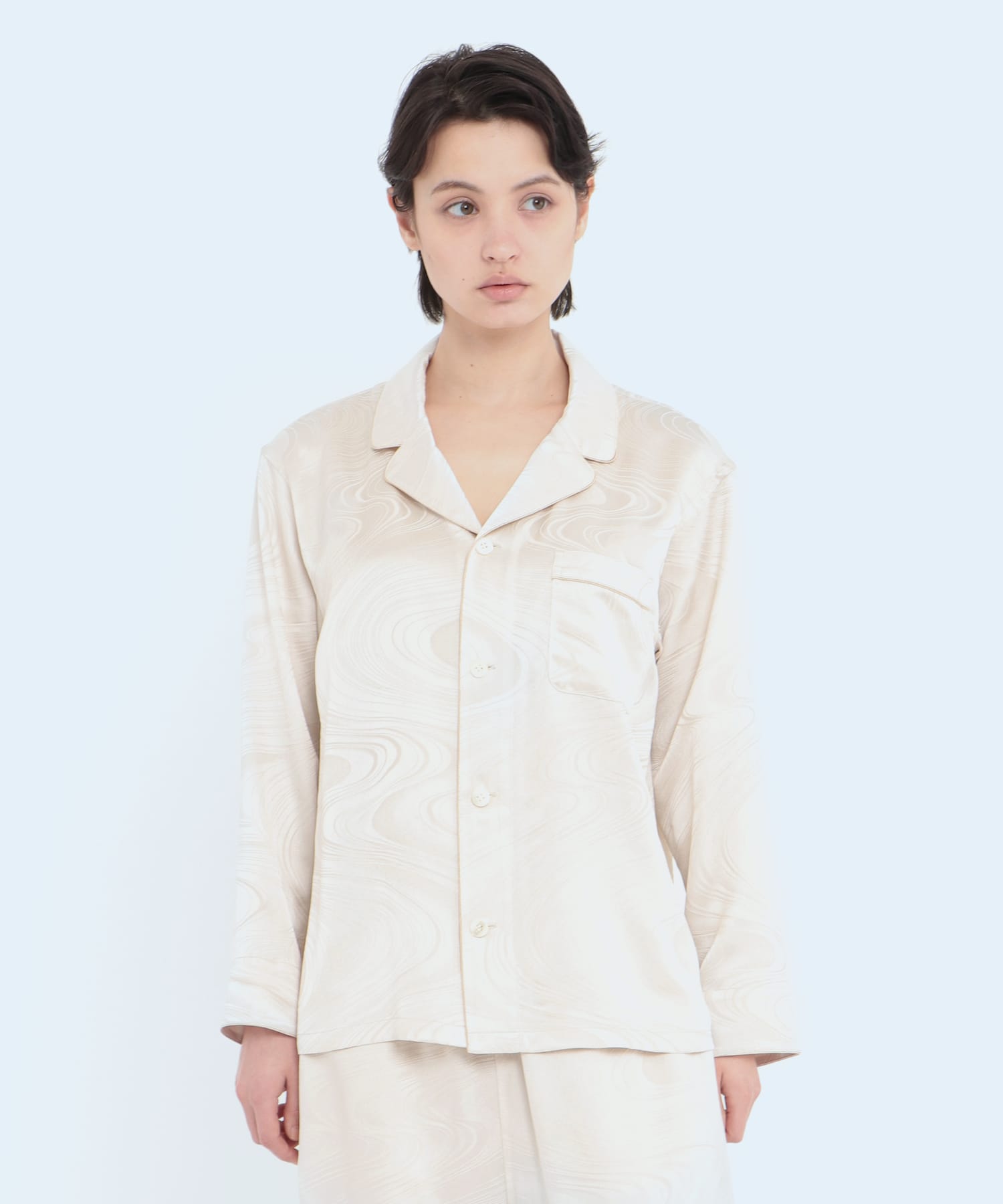 「上衣」真絲提花水紋睡衣 珍珠白