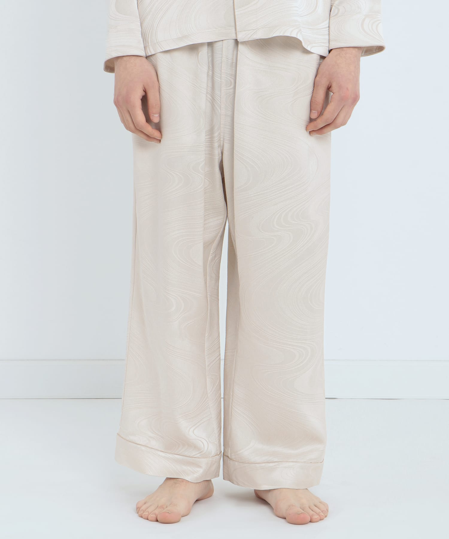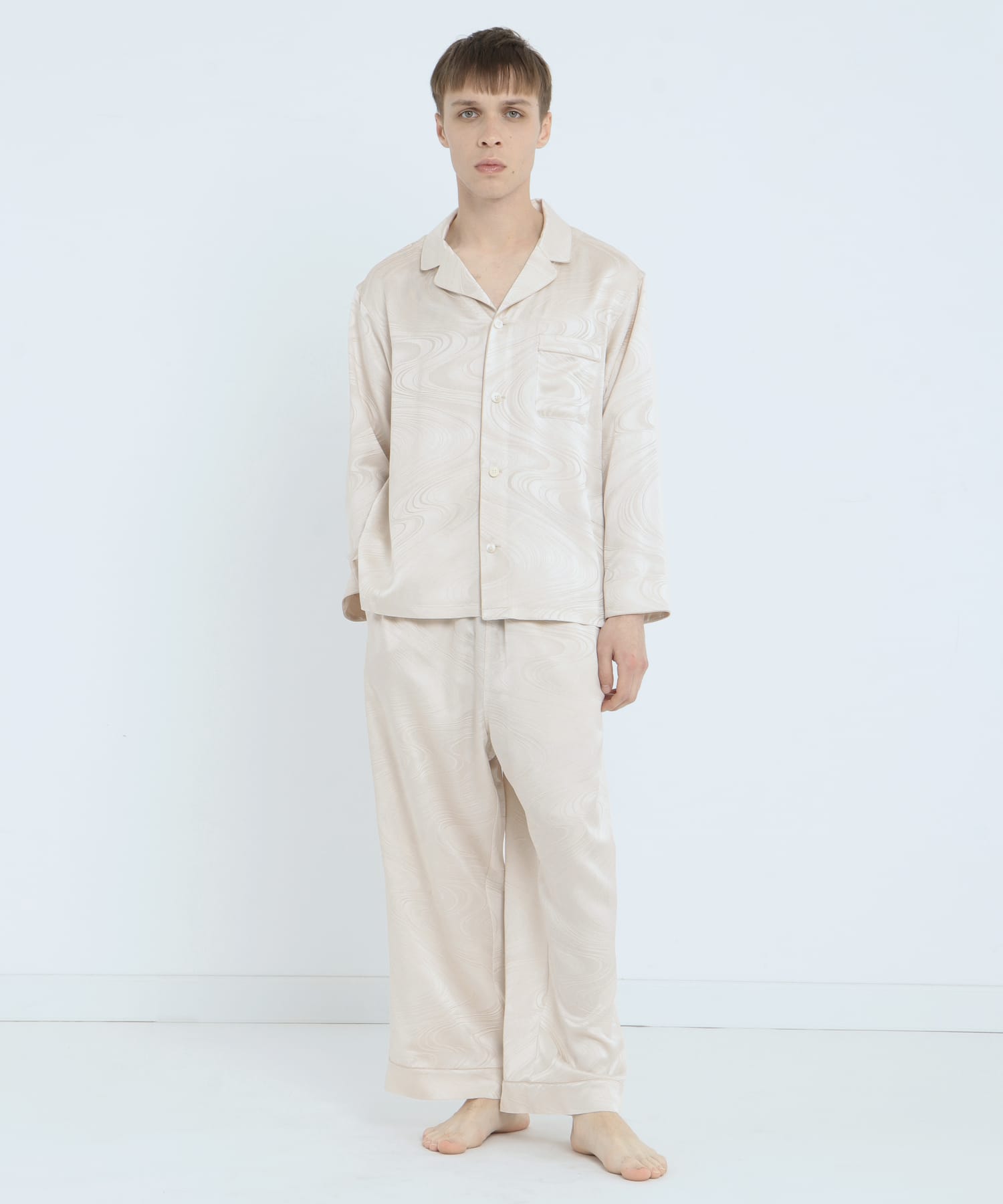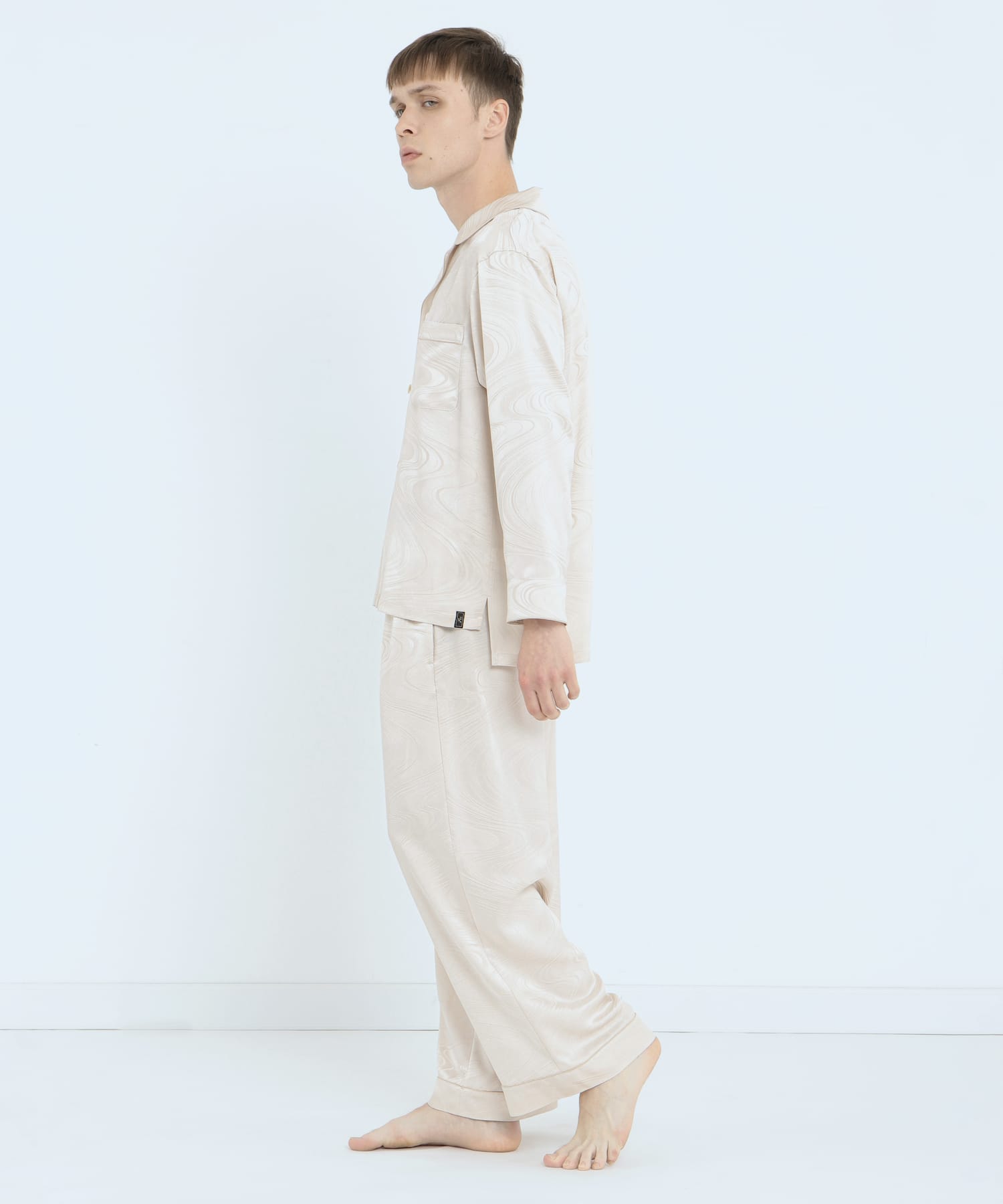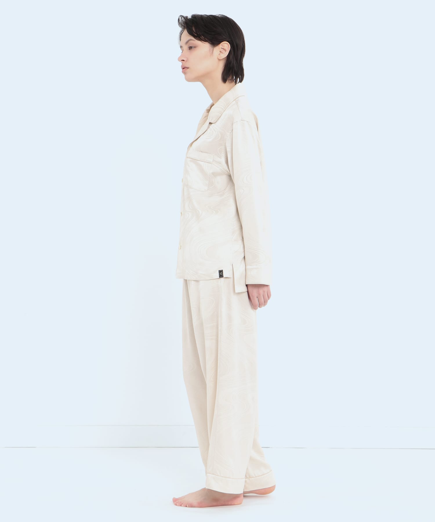 「上衣」真絲提花水紋睡衣 珍珠白