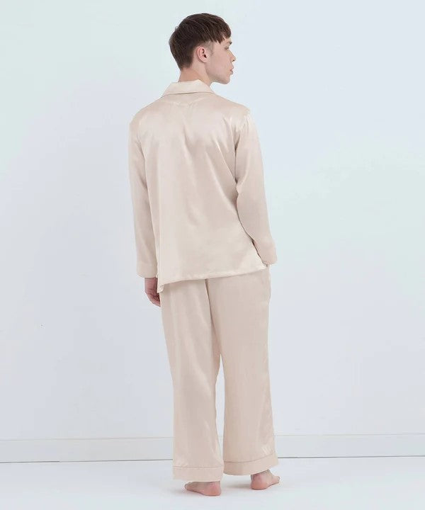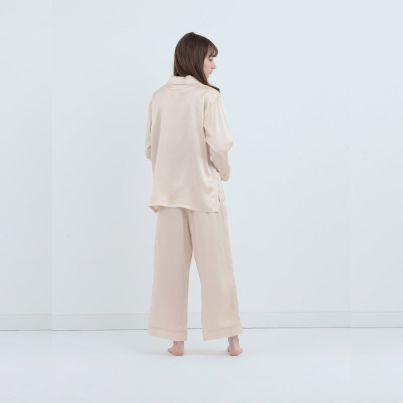 【套裝】純真絲睡衣組(長袖上衣+長褲) 珍珠白