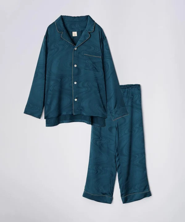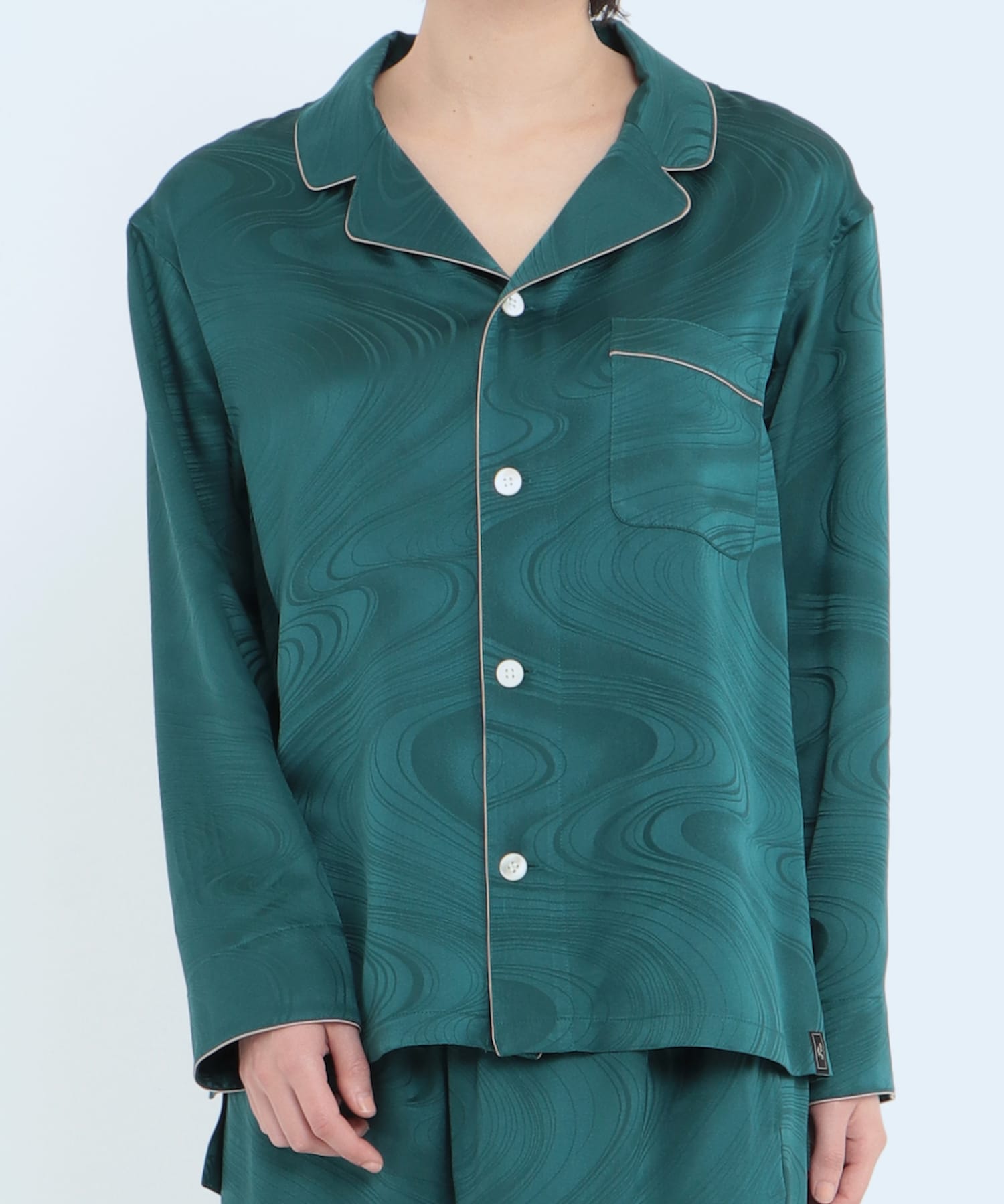 Foo Tokyo睡衣使用 100% 最優質的SLIK絲綢。 它由生絲灯製成,無需用細沙打磨即可保留絲綢的原始光澤,使其具有啞光感。