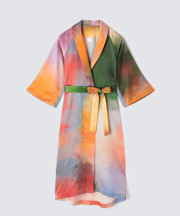 這是一款以「夢幻度假」為主題的渡假真絲高檔睡袍。