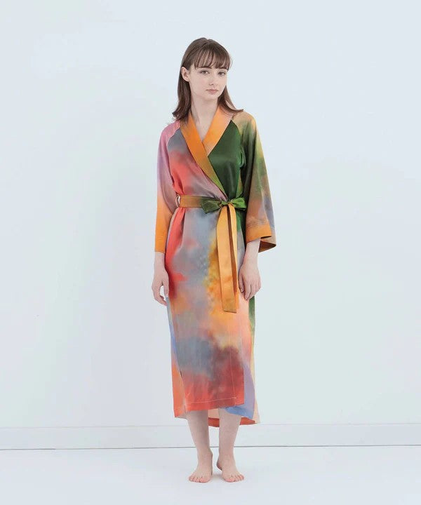 日本東京設計師限定款 渡假真絲高檔睡袍睡衣/迷霧湖畔