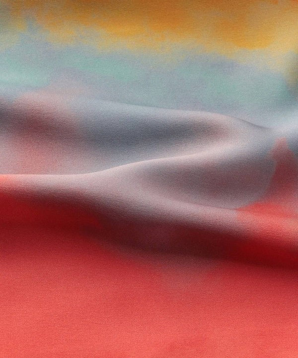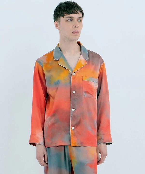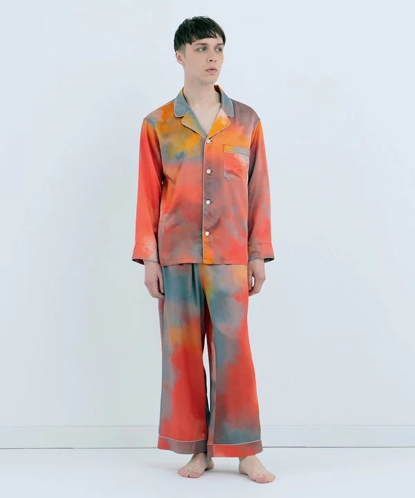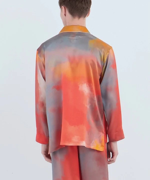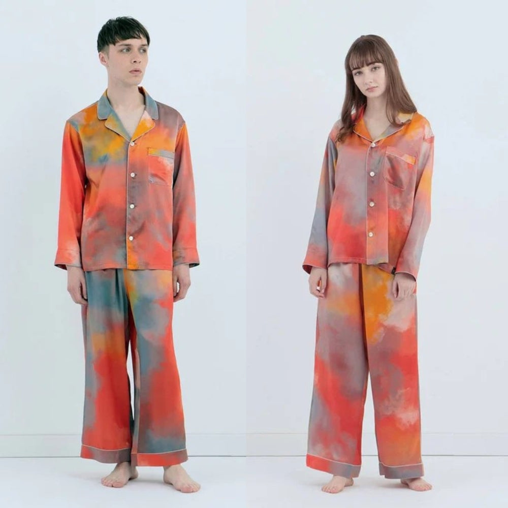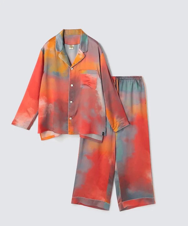 【套裝】日本限定款 渡假真絲高檔睡衣設計款組(長袖上衣+長褲) 晚霞