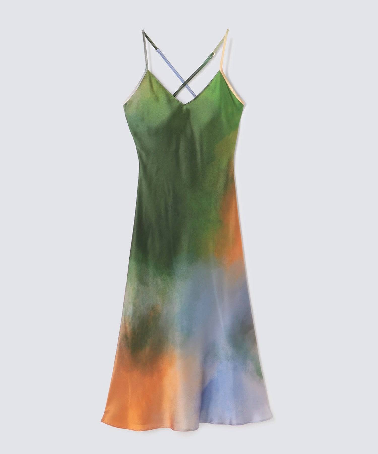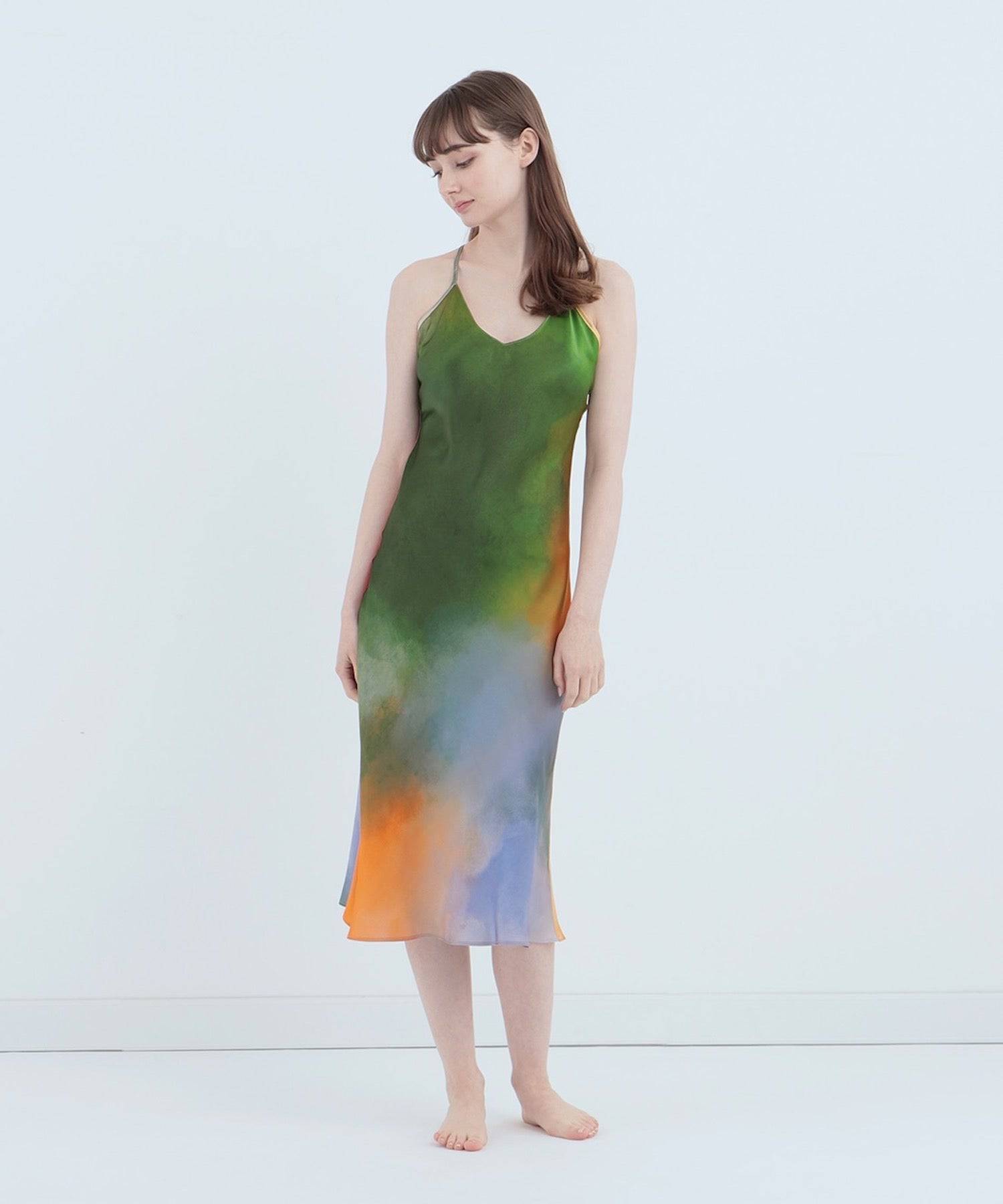 東京設計師限定款 渡假真絲高檔細肩洋裝 迷霧湖畔