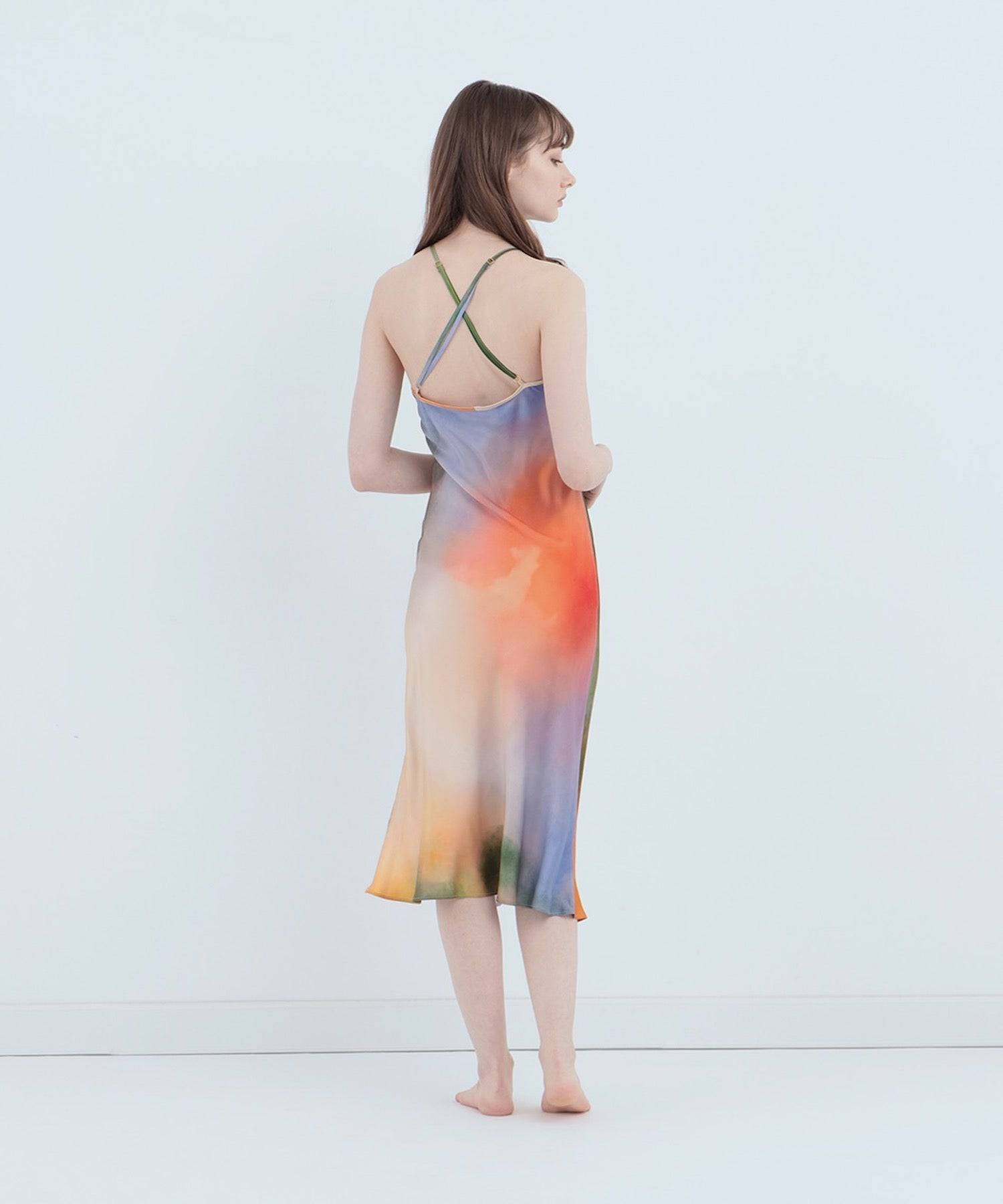 回憶中的度假景象彷彿夢中一般。有著「夢」與「現實」透過服裝互相交融的連身裙。