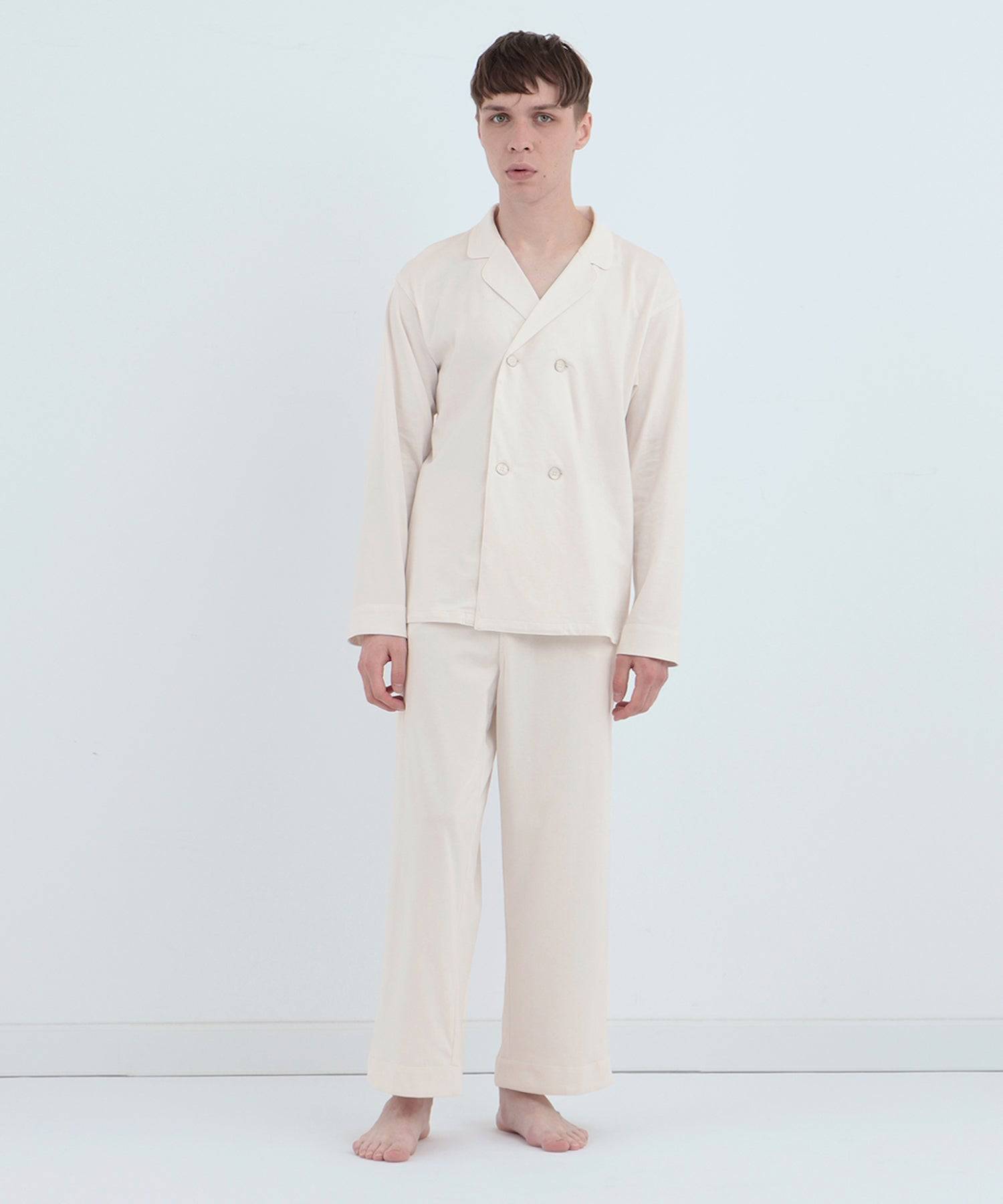 皇家有機純棉排釦長袖睡衣 白色
