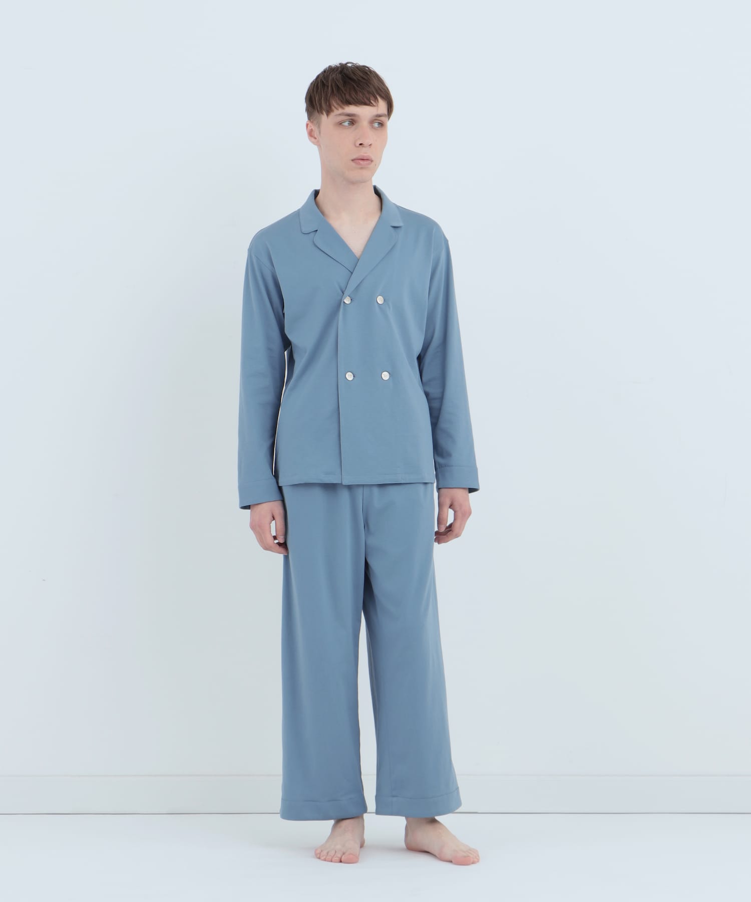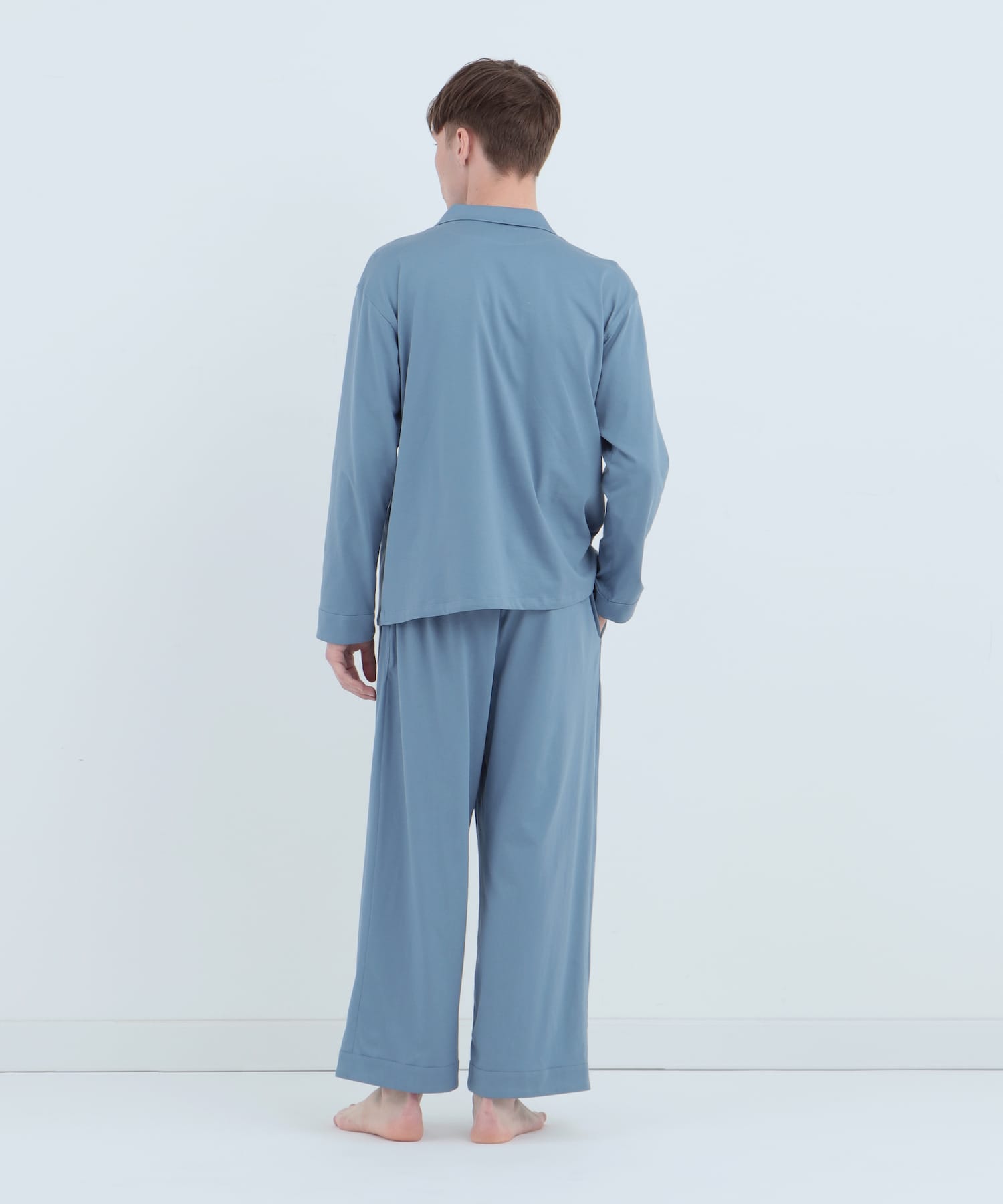 皇家有機純棉排釦長袖睡衣 鈷藍色
