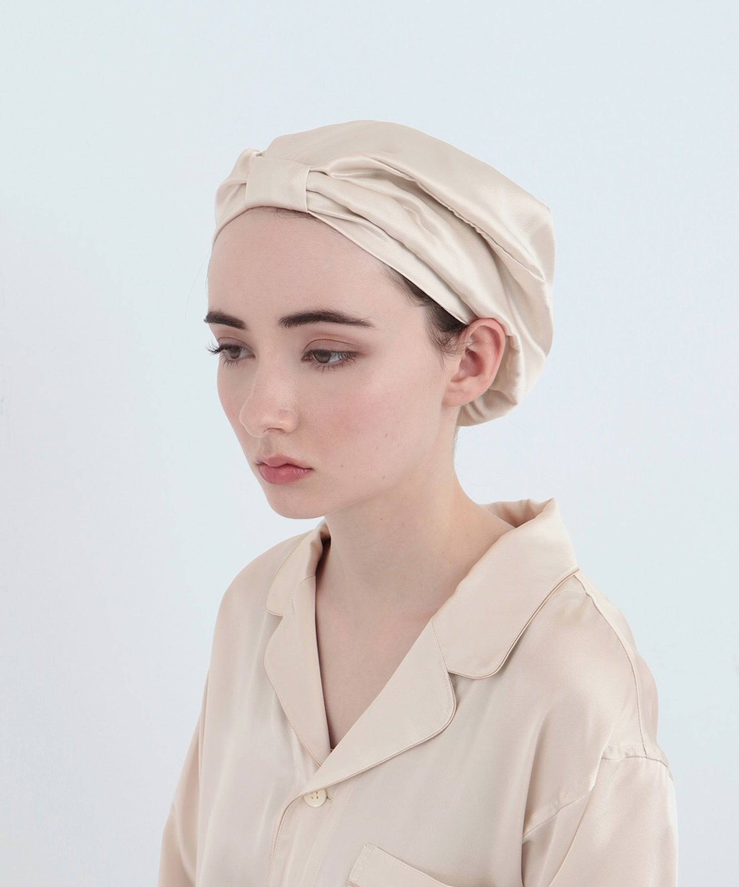 純真絲睡帽 珍珠白