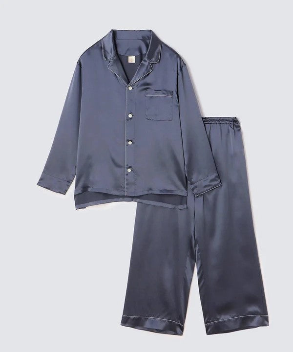 Foo Tokyo睡衣使用 100% 最優質的SLIK絲綢。 它由生絲灯製成,無需用細沙打磨即可保留絲綢的原始光澤,使其具有啞光感。