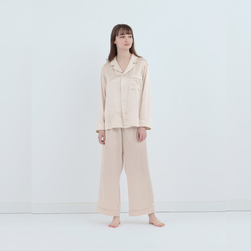 光滑舒適的絲綢睡衣會讓您的居家時光更加美好。絲綢是一種高級纖維, 因具有與人體肌膚相近的成分,而又稱為第二肌膚。因為吸濕特性及放濕特性十分出色,所以也具備調節濕度的效果 ,讓您在夏天保持涼爽,在冬天保持溫暖。