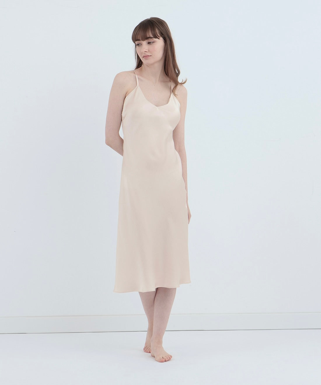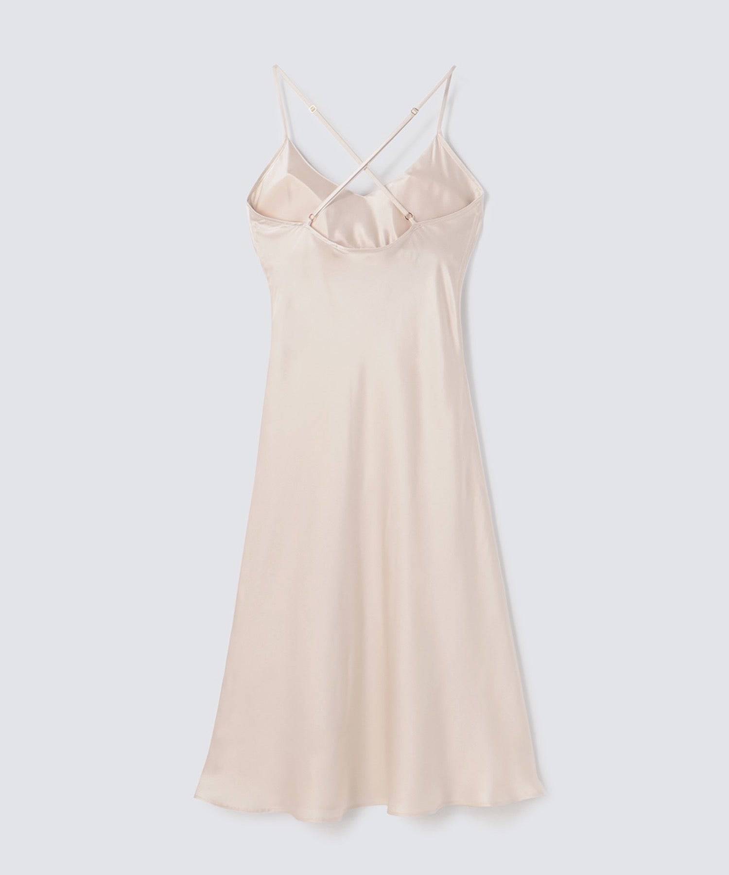 純真絲細肩洋裝 珍珠白