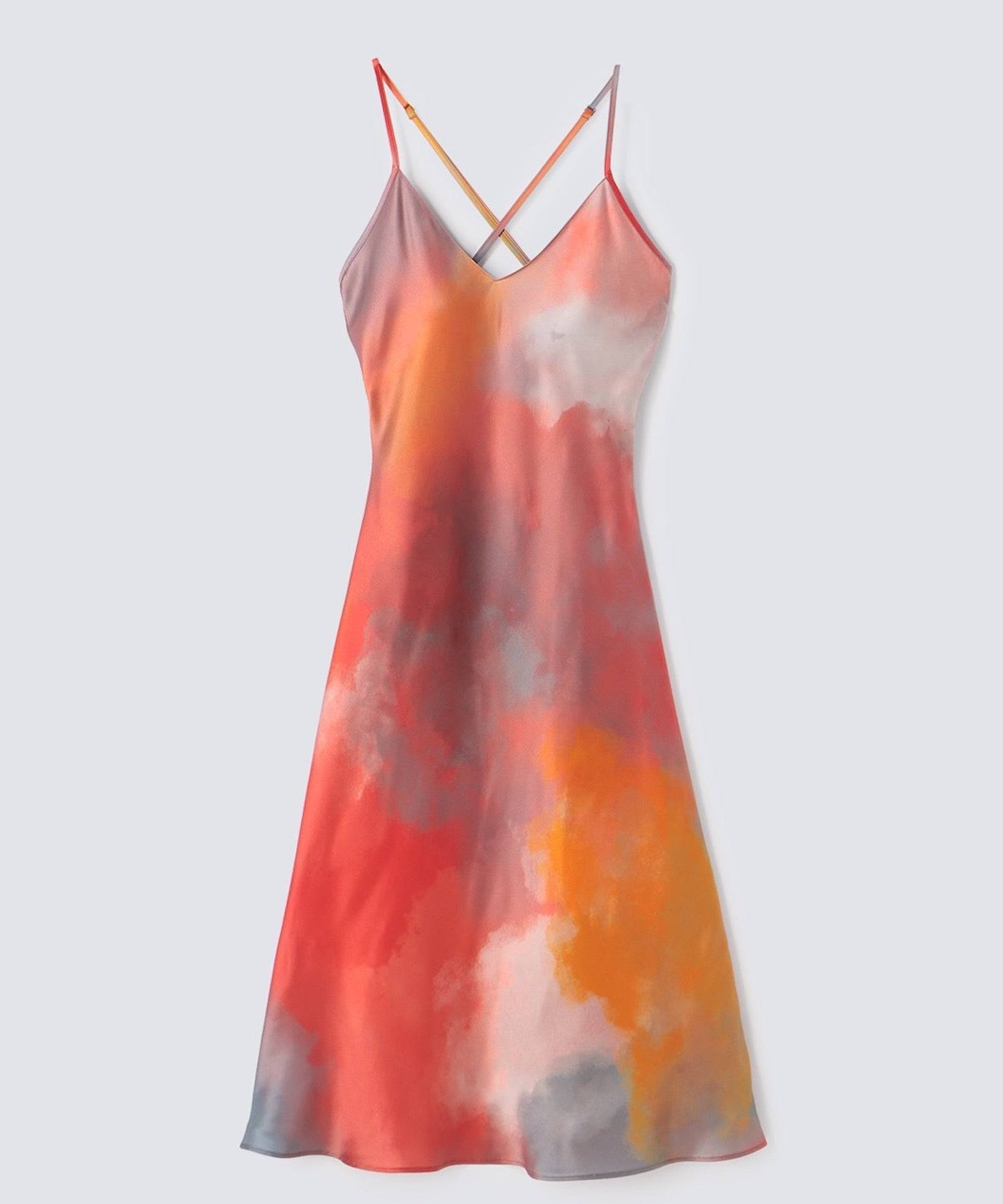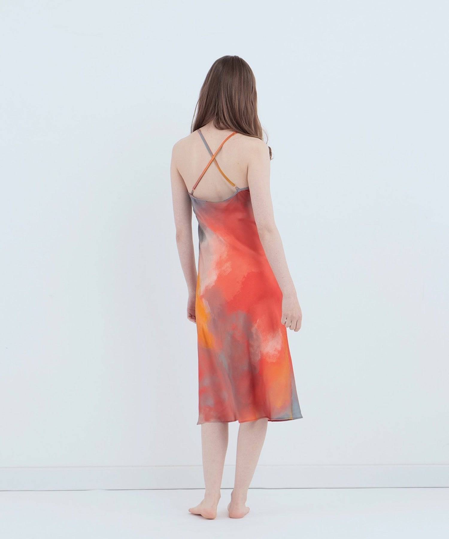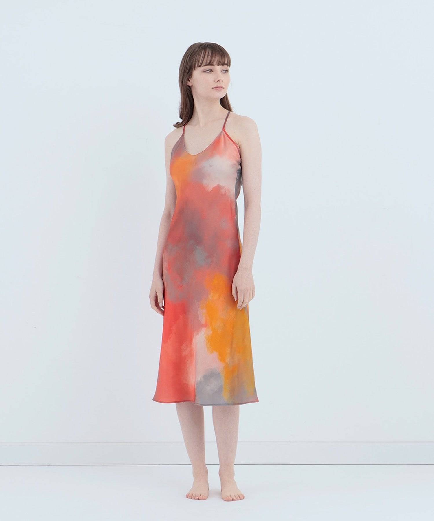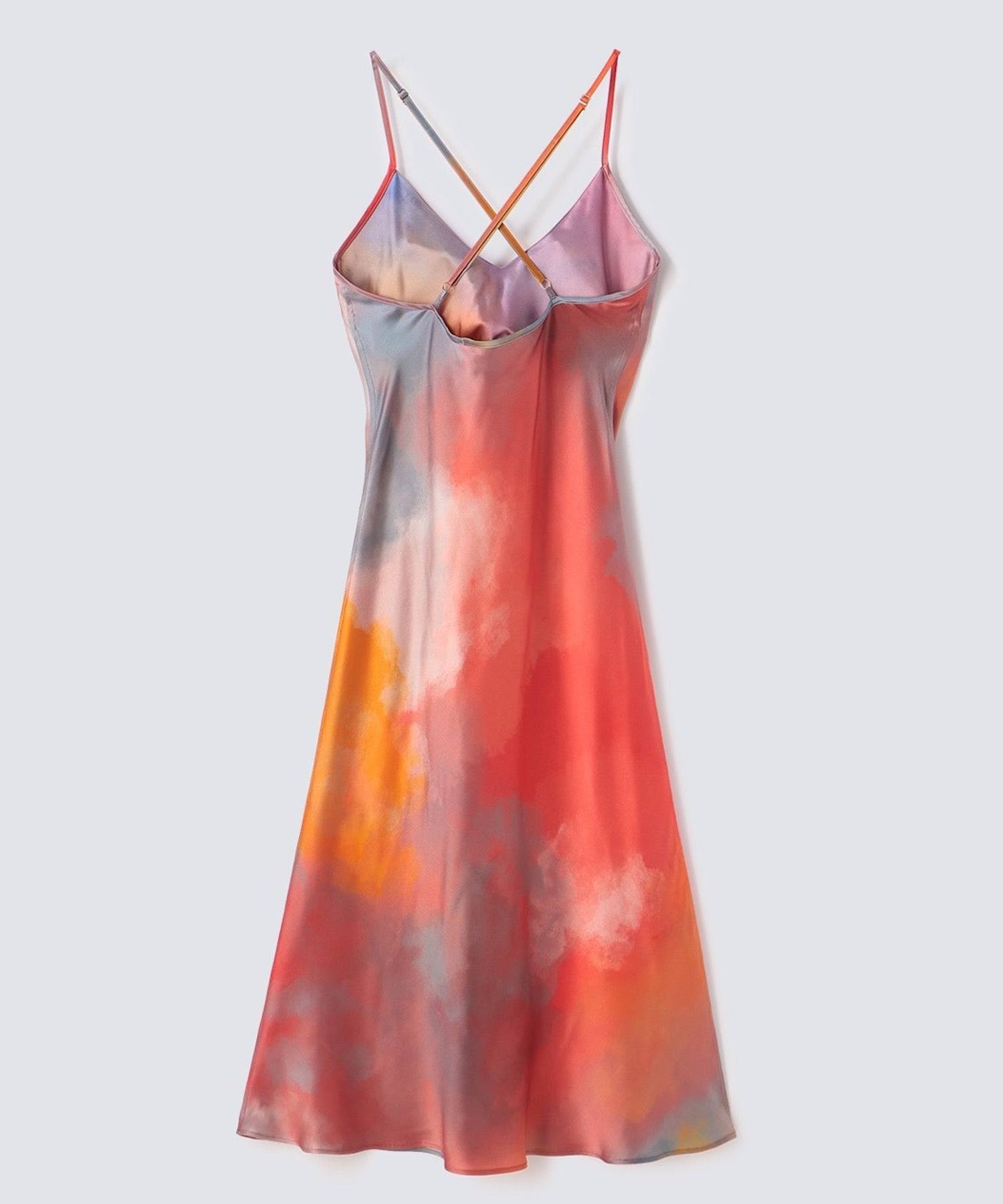 東京設計師限定款 渡假真絲高檔細肩洋裝 晚霞